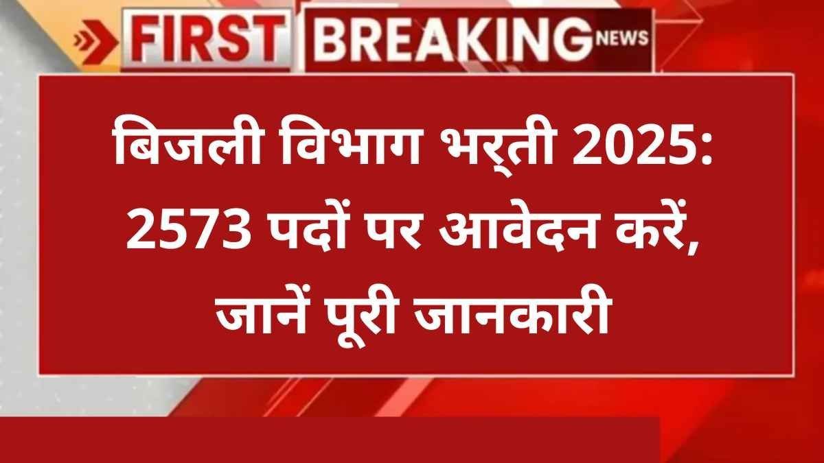 पश्चिम क्षेत्र विद्युत वितरण कंपनी लिमिटेड, मध्य प्रदेश ने बिजली विभाग भर्ती 2025 के लिए 2573 पदों पर वैकेंसी निकाली है। यह मौका खासकर उन युवाओं के लिए है जो 12वीं पास हैं और सरकारी नौकरी की तलाश में हैं। आवेदन प्रक्रिया 25 दिसंबर 2024 से शुरू होकर 23 जनवरी 2025 तक चलेगी।