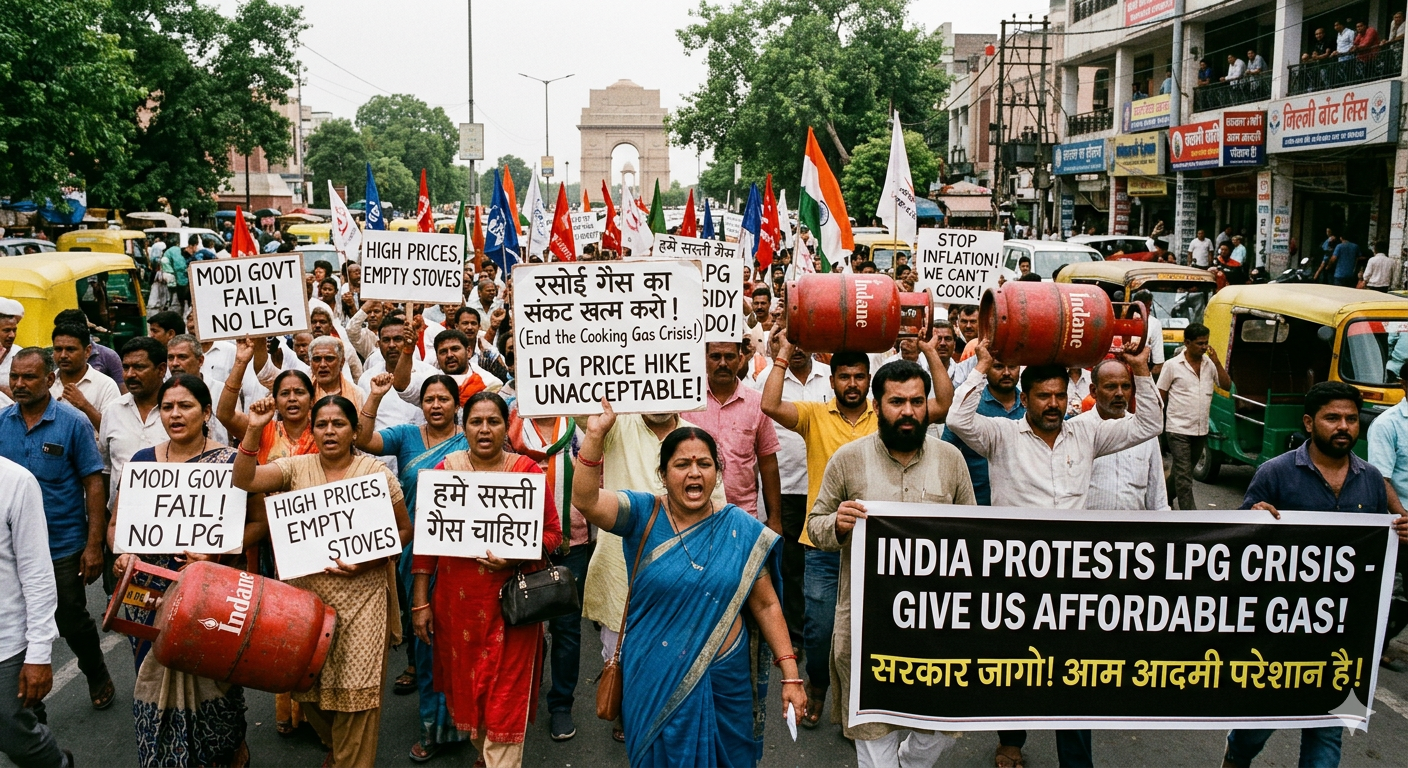 • पश्चिम एशिया में युद्ध के बीच गैस सिलेंडर की किल्लत पर केंद्र सरकार को घेरा, दिल्ली से राजस्थान और महाराष्ट्र तक विरोध प्रदर्शन